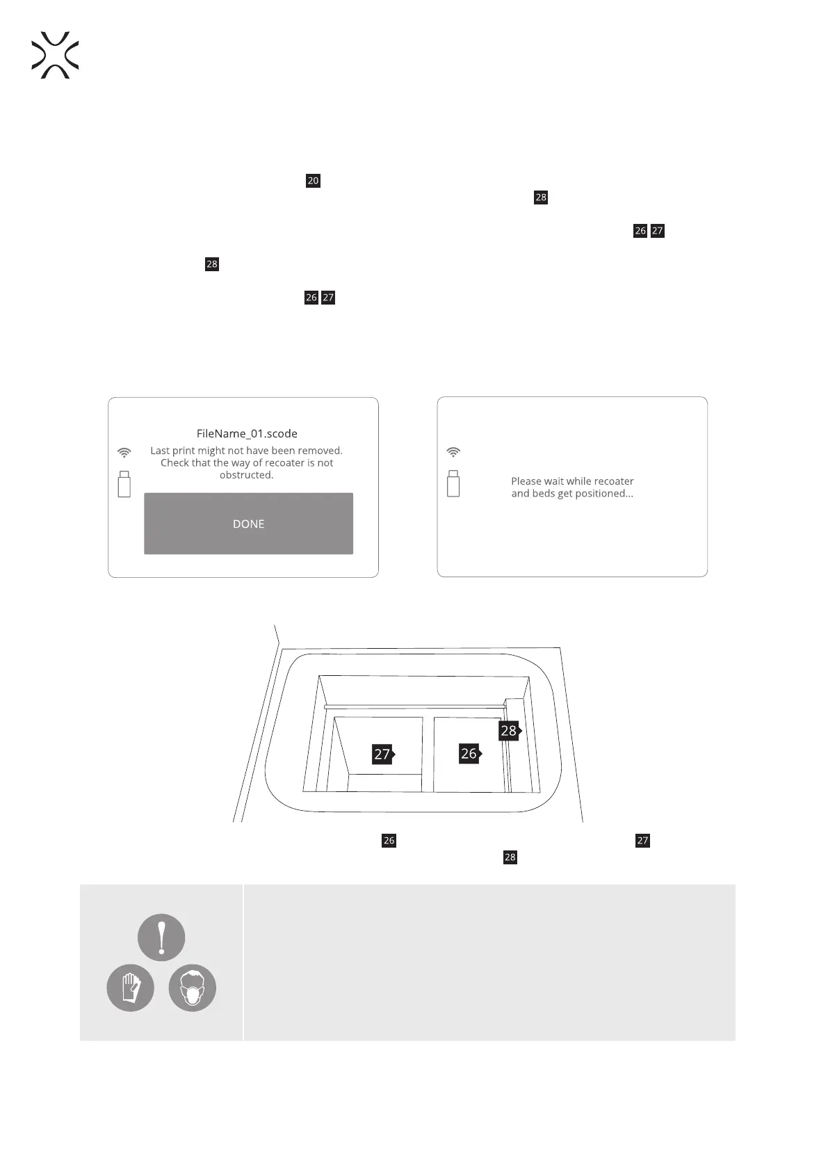 7. By clicking DONE the RECOATER and the BEDs will be repositioned (Image 16). During this operation, the