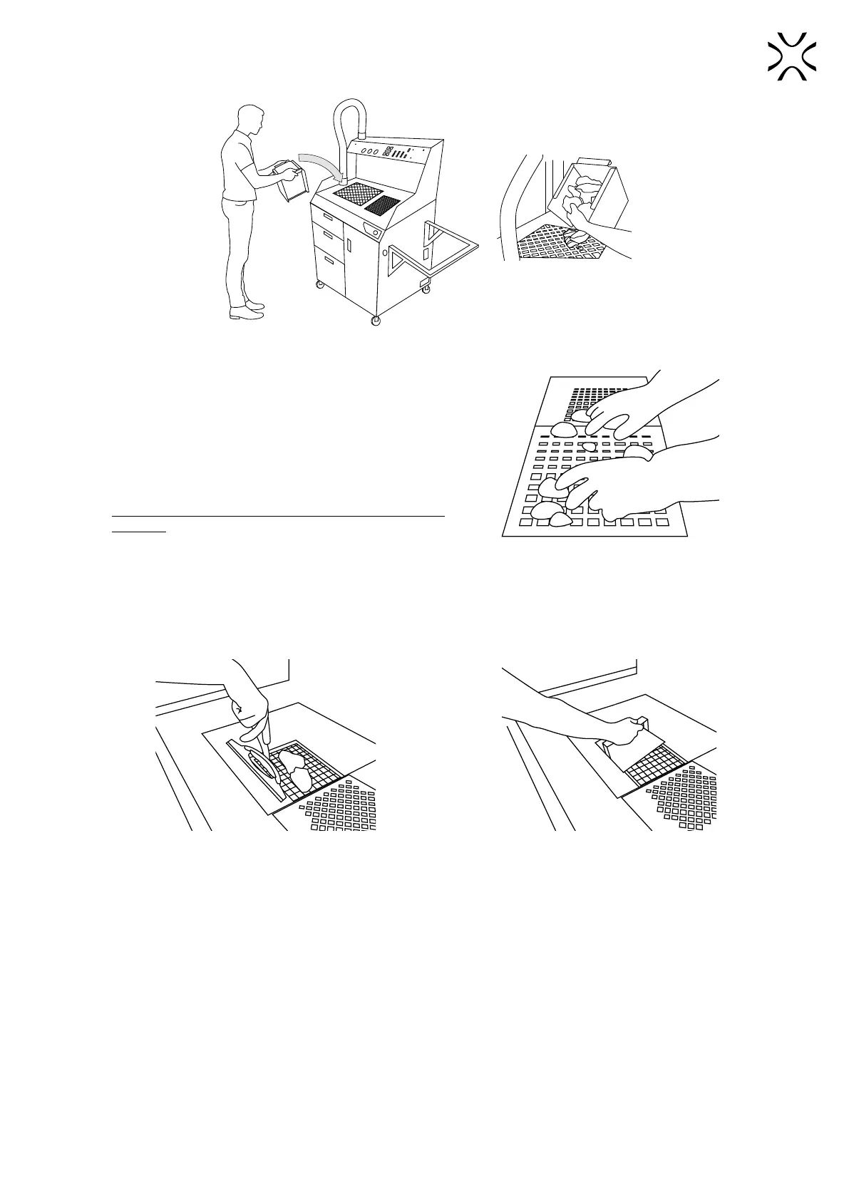 7. The extracted prints should be cleaned above the Fine Dust Chamber grid with brushes, stainless steel probes, and