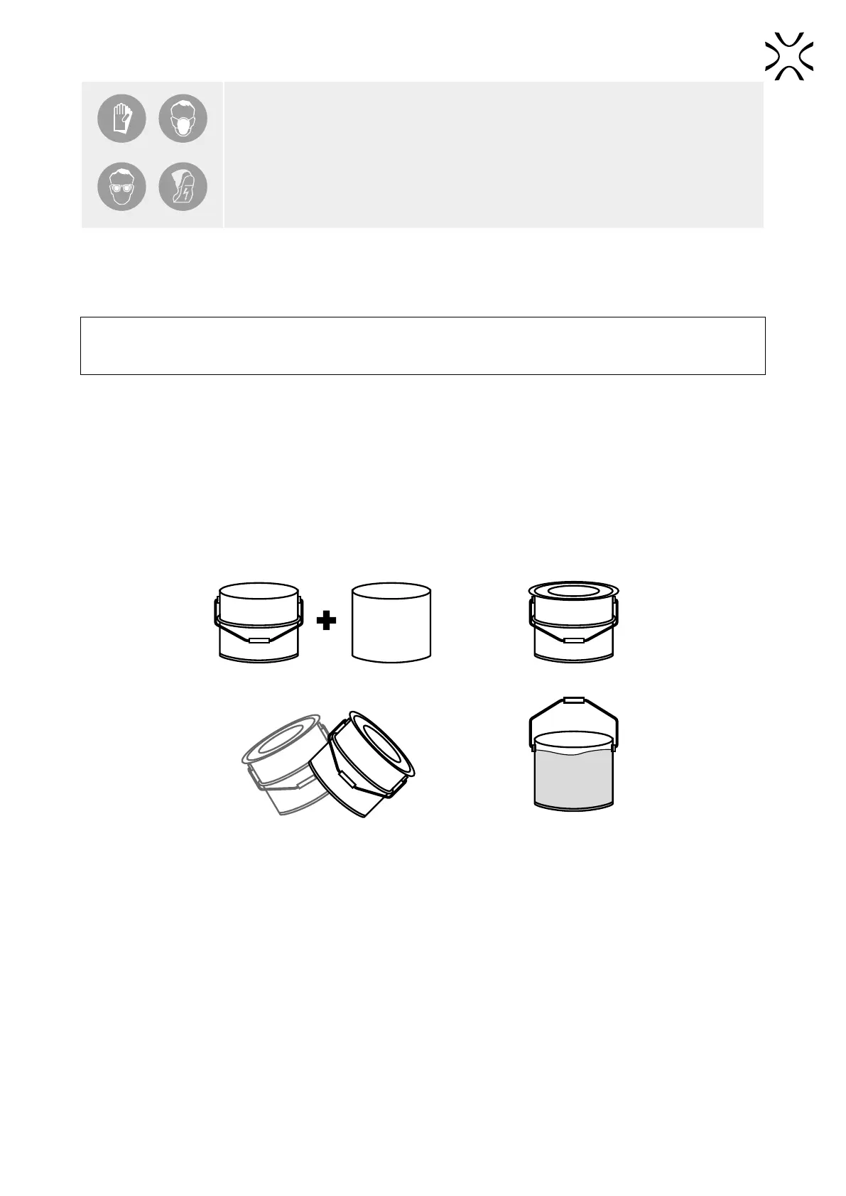 • Before starting any work with powder, always wear adequate protective clothing,