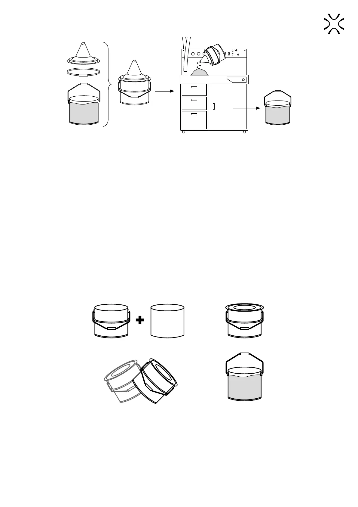 3. Add Fresh Powder to the sifted Used Powder in the Metal container. Close tightly using the lid and clamping ring.