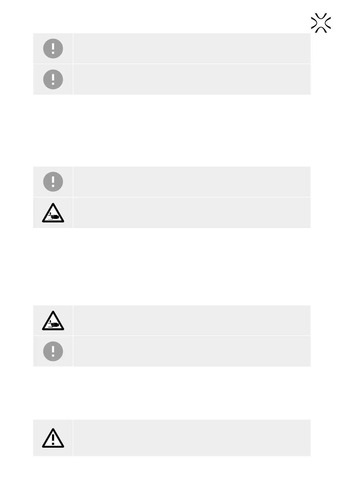 Risk of crushing hands! The moving recoater can cause hand injuries.