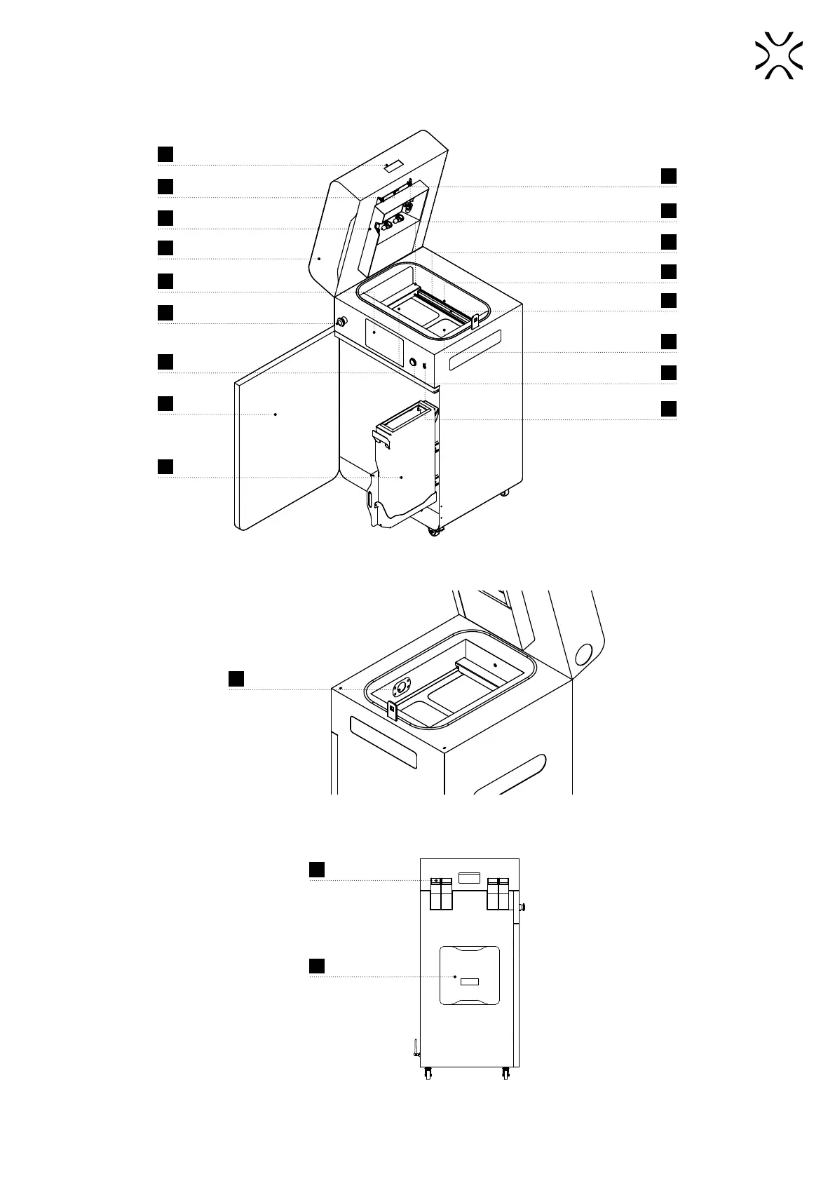 Fig. 3.1 Front view of the printer, heating module and overow container.