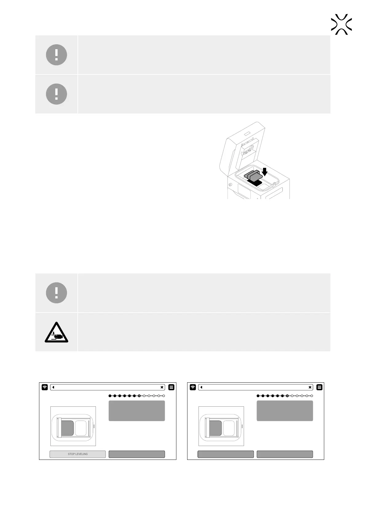 2. Press START LEVELING to begin leveling the powder surface (g. 6.8).