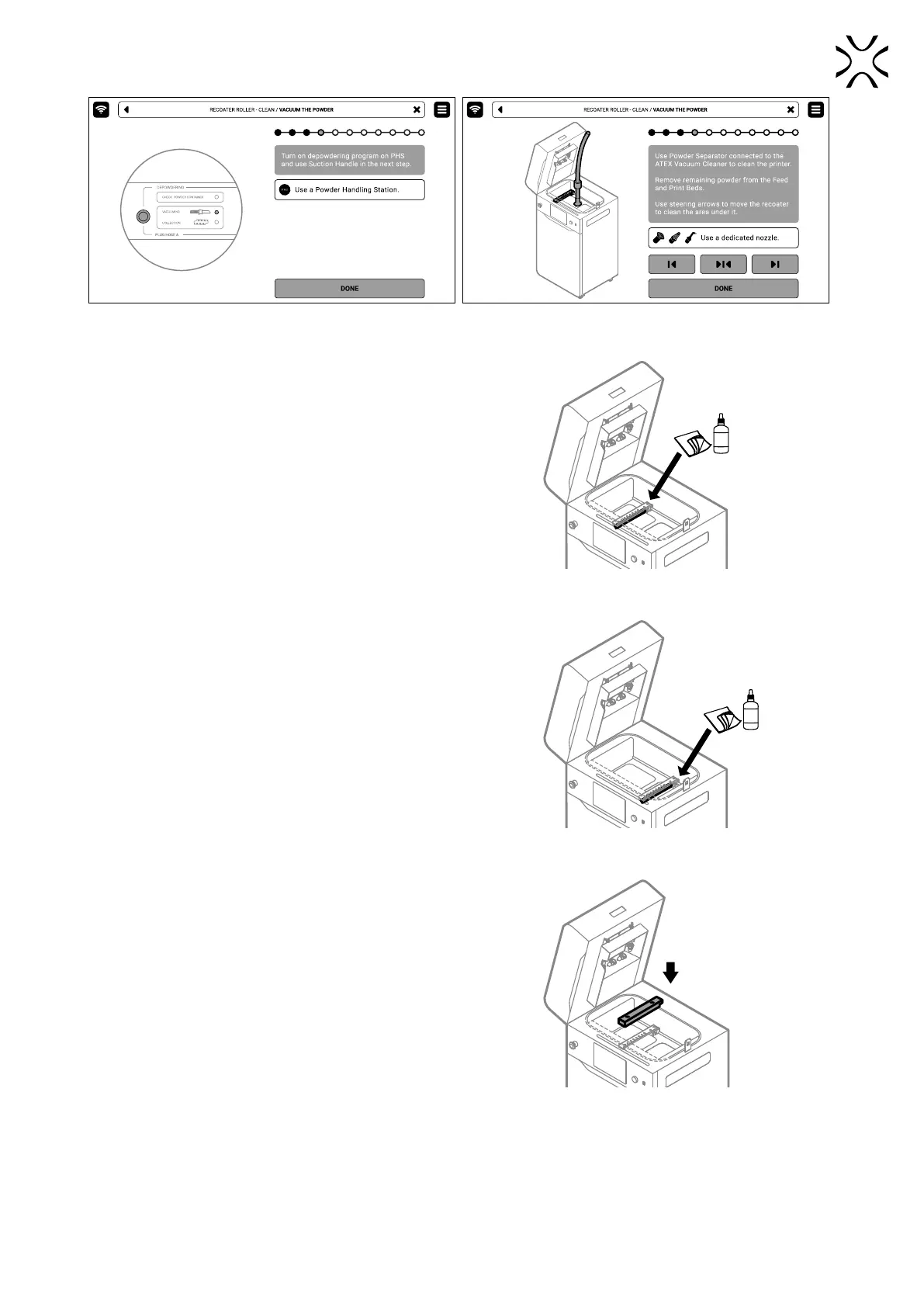 12. Wipe the Recoater roller with dry cloth to remove the