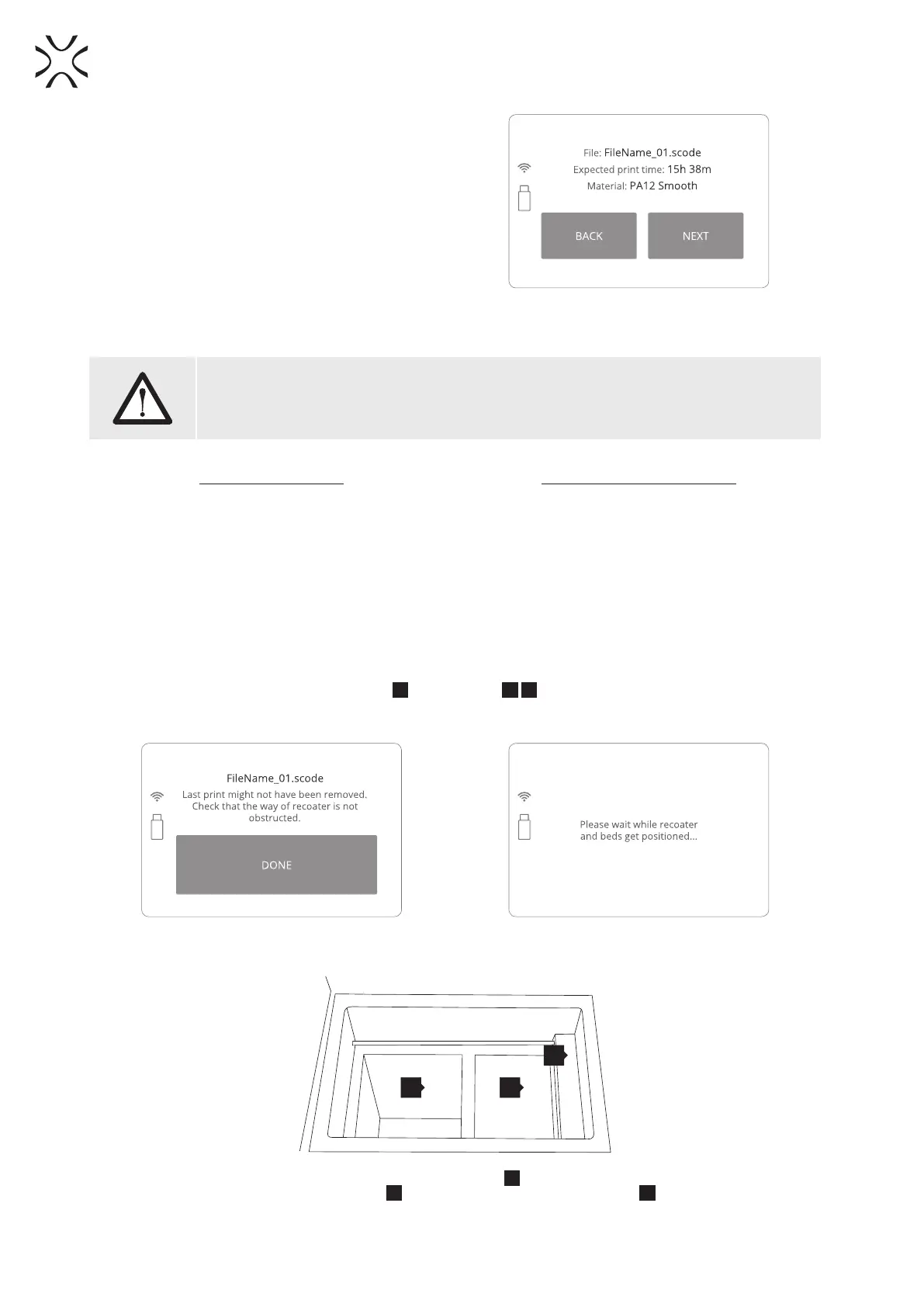 • Next, “POSITIONING BEDS FOR PRINTING” message