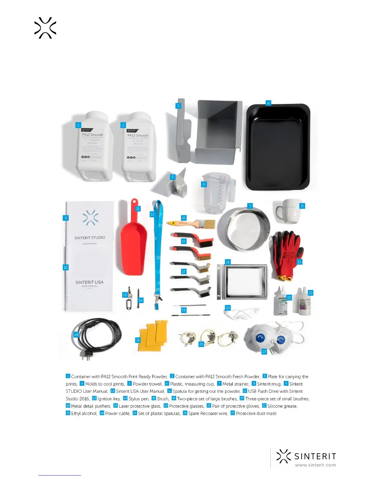 C. Contents of the Sinterit Lisa pack