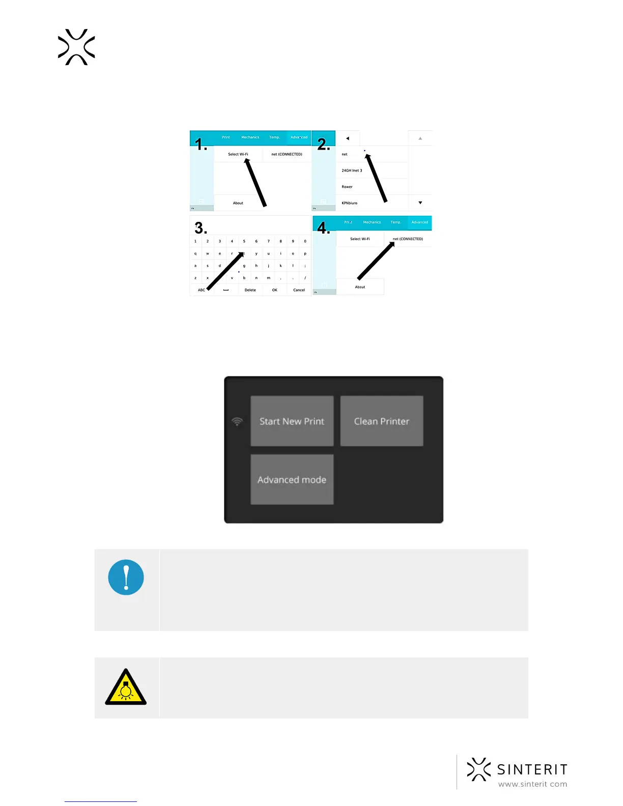 6. Switch off, then turn the printer on again. After switching on the Sinterit Lisa, the