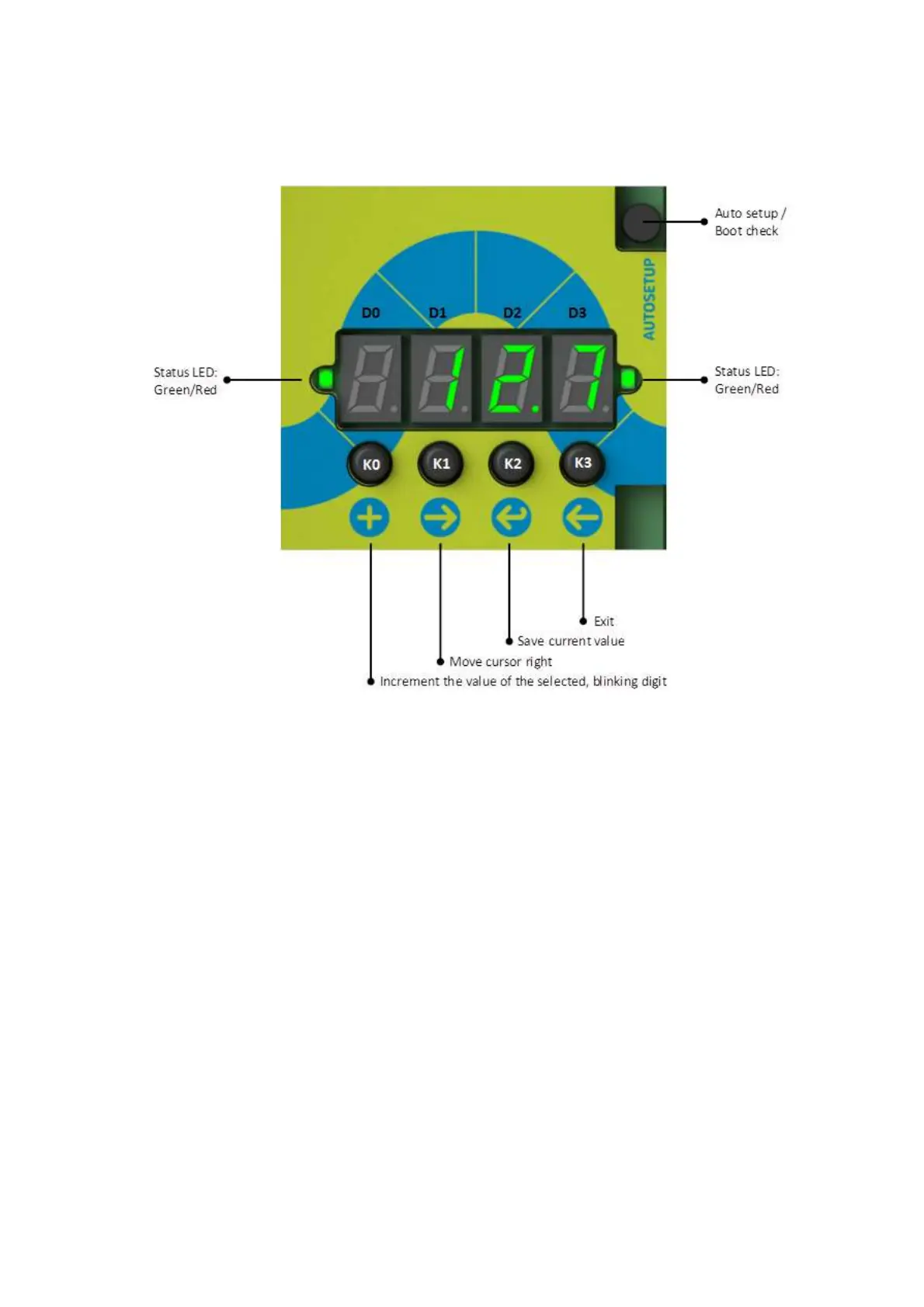 The S303 and S304 is equipped with a 4- Digit, 7- Segment display and 5 key buttons, placed on the top of the