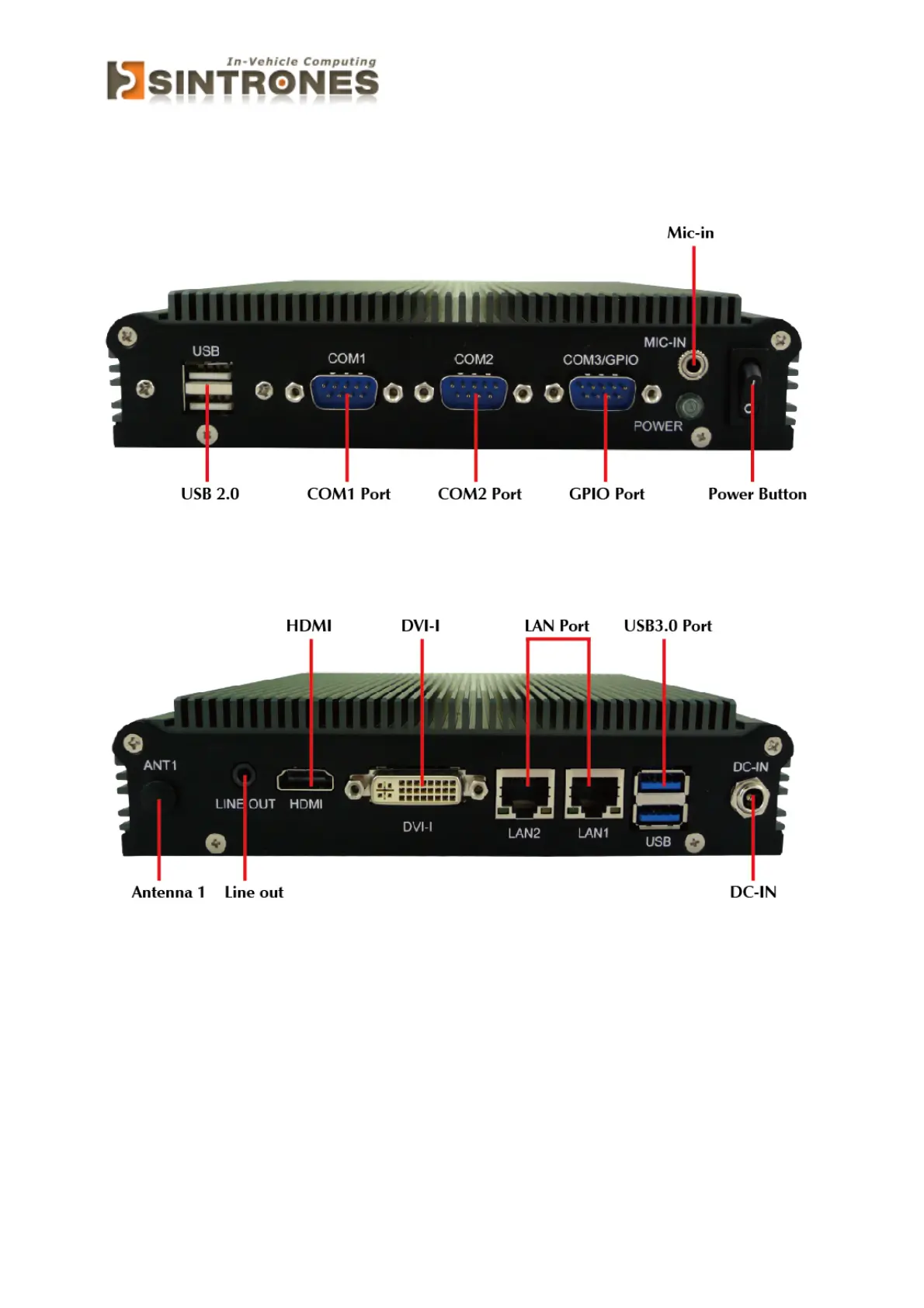 Sintrones SBOX-2300 - 7 System Introduction; I;O Panel for SBOX-2300