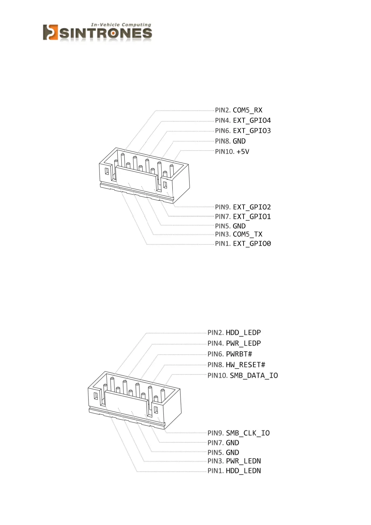 Sintrones VBOX-3130 - UART and GPIO Connector Pinout; LED Connector Pinout