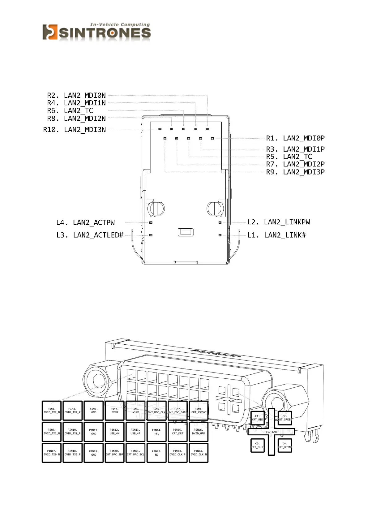 Sintrones VBOX-3130 - LAN2 Connector Pinout; DVI-I Connector Pinout