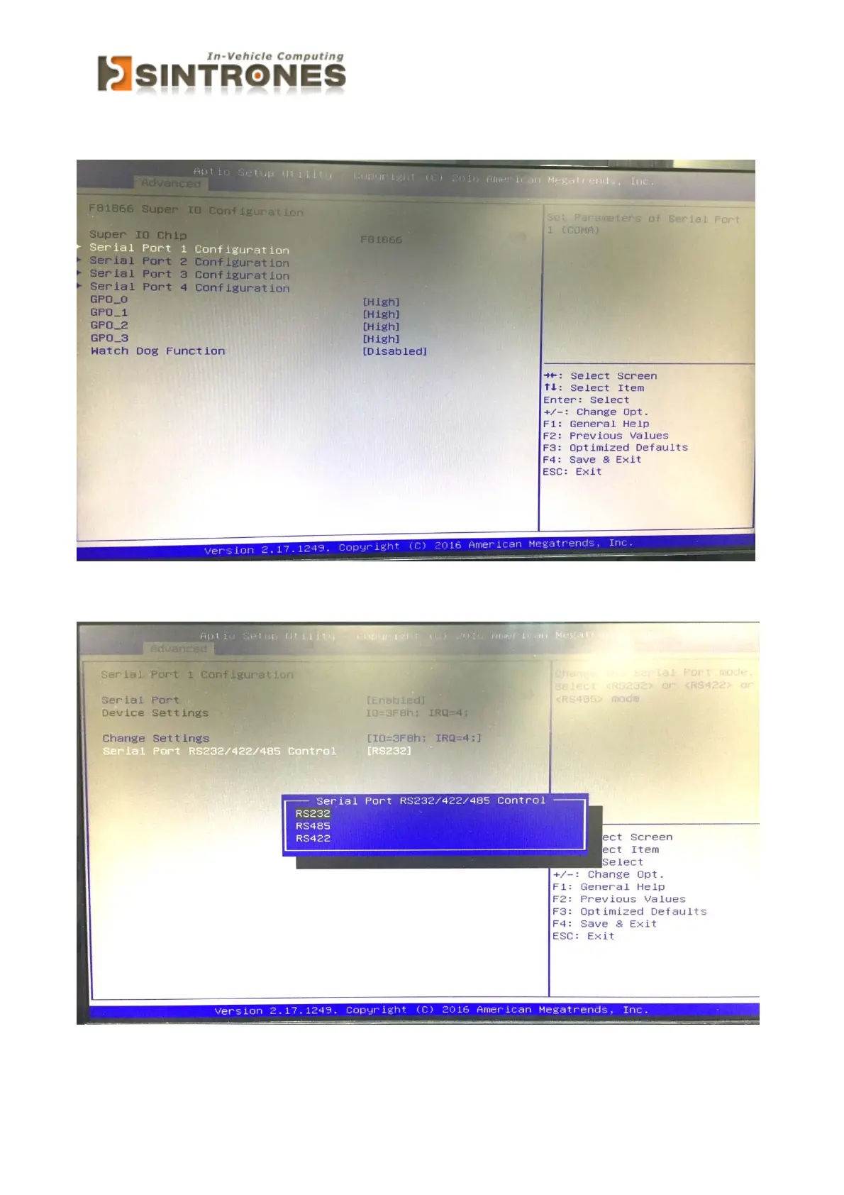 Sintrones VBOX-3130 - COM1 RS232;422;485 Configuration