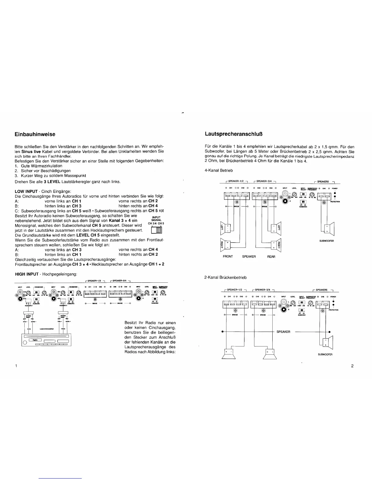 Sinus Live 3505 - Installation instructions; LOW INPUT - RCA:; HIGH INPUT:; Speaker connection