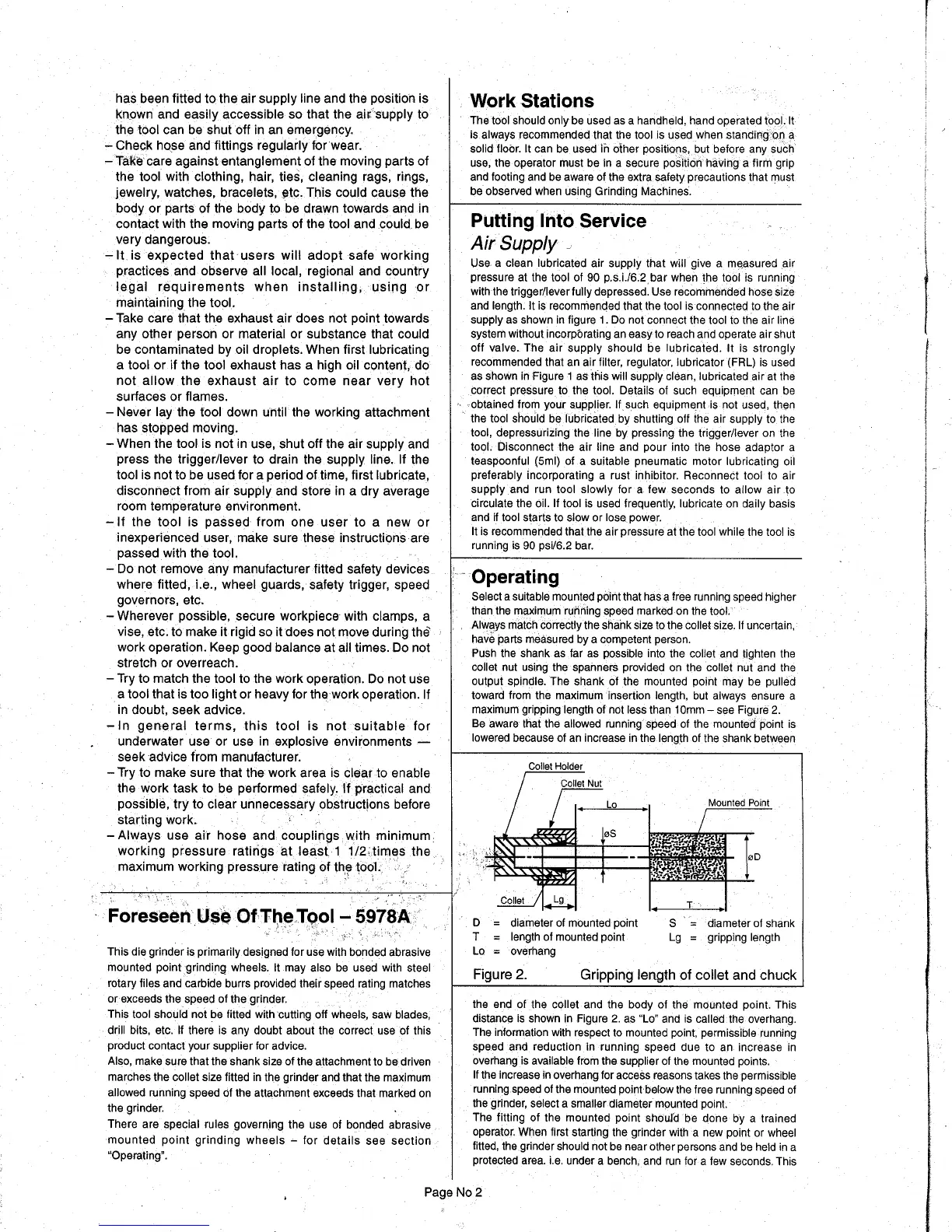Sioux Tools 5978A - Foreseen Use Of The Tool - 5978 A; Work Stations; Putting Into Service; Operating