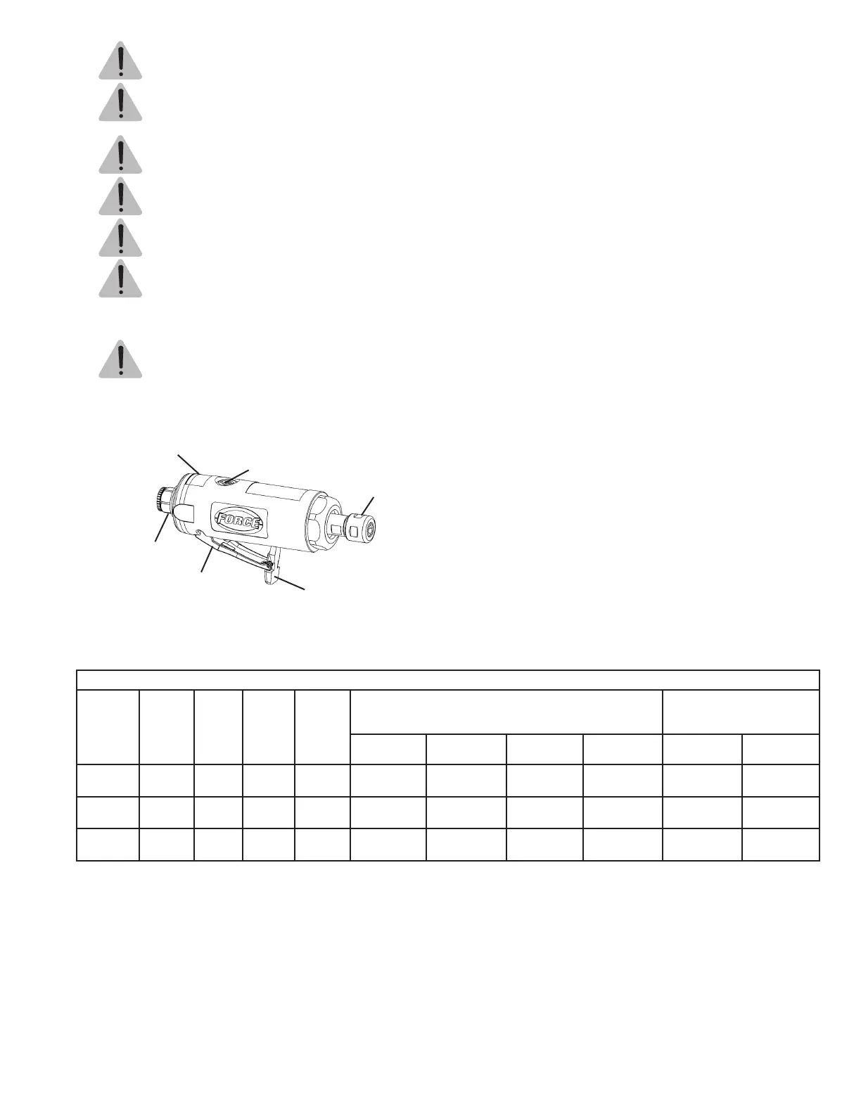 Verktygets effektivitet och livslängd är beroende av korrekt tillförsel av ren torr luft med ett tryck på max. 6,2 bar (90 psig). Användning av ledningsfilter,