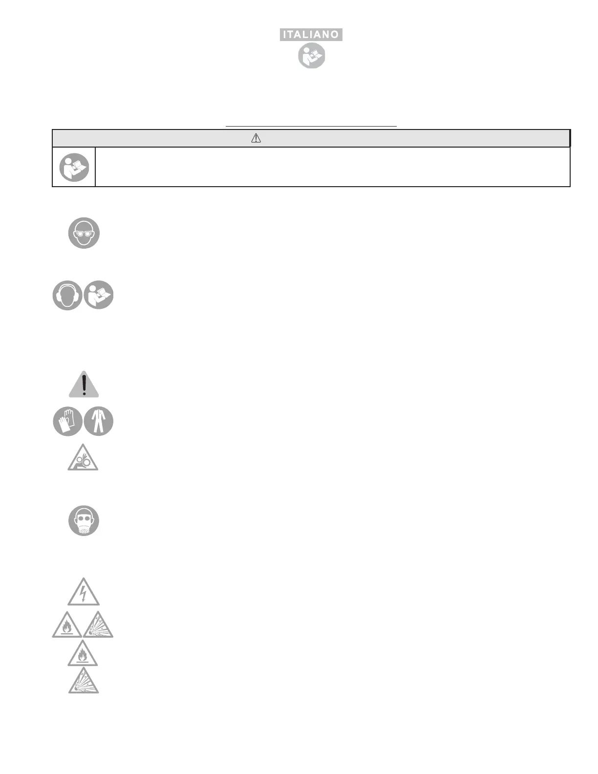 alto, utilizzare un elmetto protettivo. È obbligatorio usare occhiali di protezione e si raccomanda di indossare guanti e indumenti