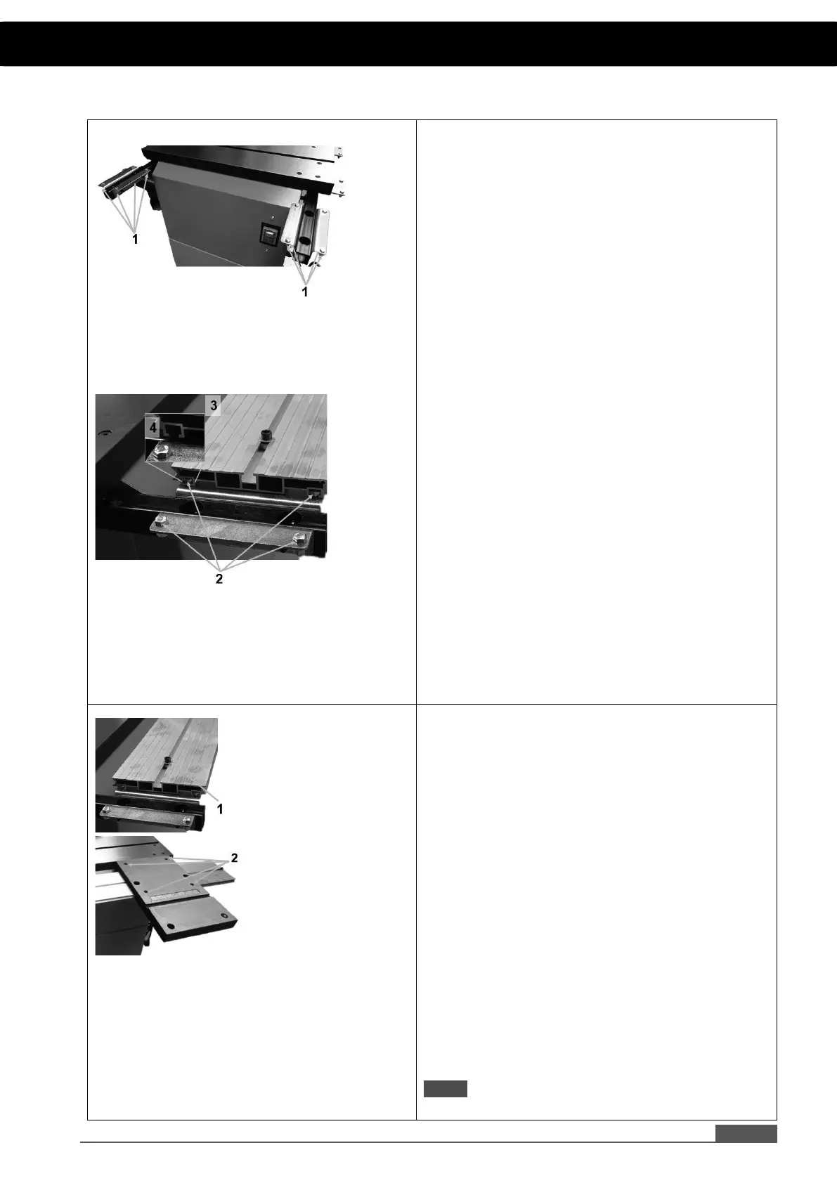 • Loosen 4 nuts (1) per sliding table bracket.