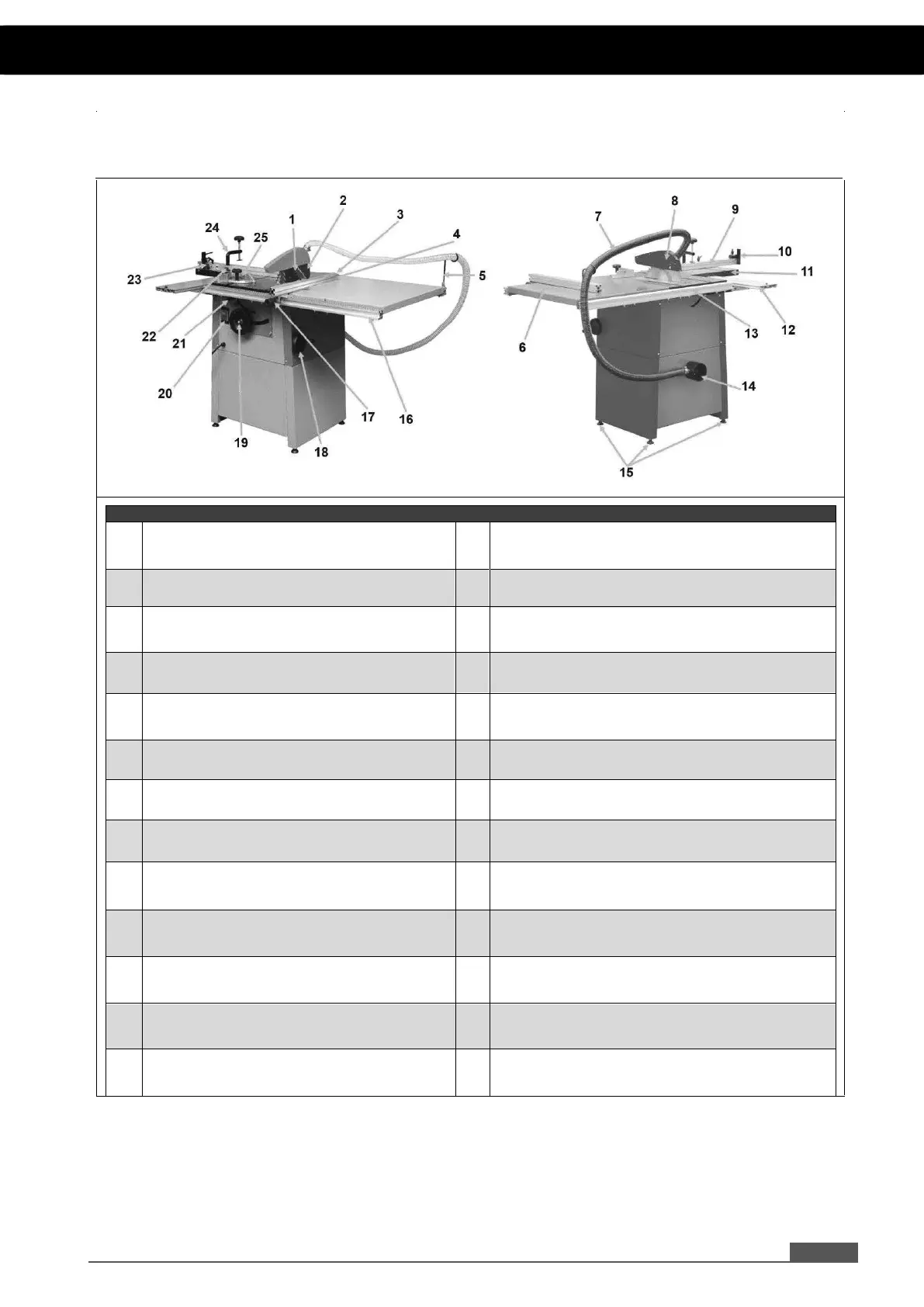 5 Holder for suction hose 18 Handwheel saw blade tilting