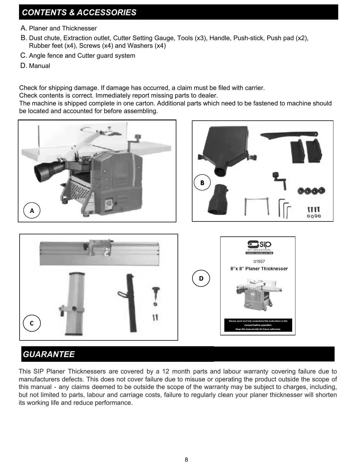 but not limited to parts, labour and carriage costs, failure to regularly clean your planer thicknesser will shorten