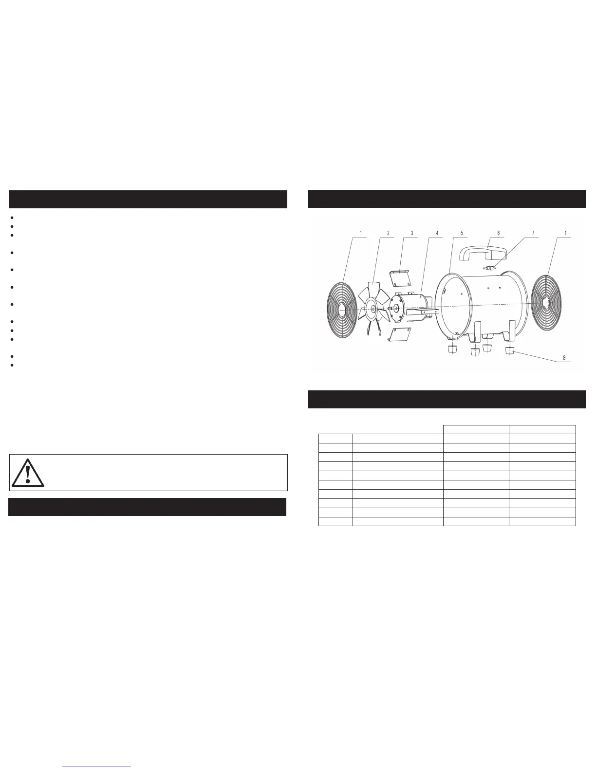 Never operate the fan without all guards in place.