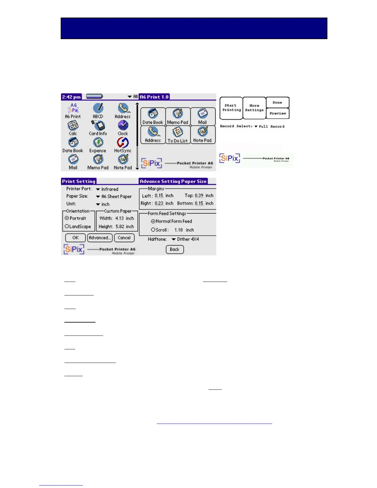 A6Print prints via infrared and in the future to PDA Serial Cables
