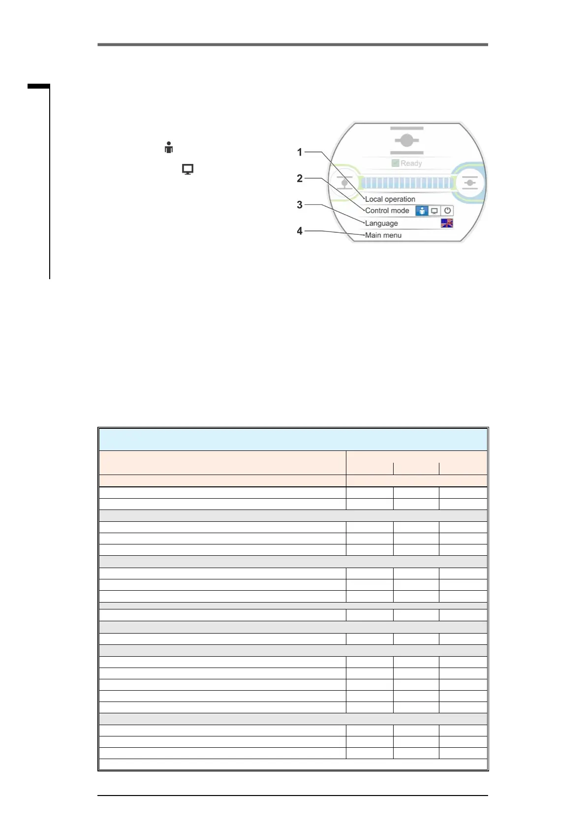 Use the ‘Control mode’ menu item to change between ‘LOCAL’, ‘REMOTE’ and ‘OFF’. The following
