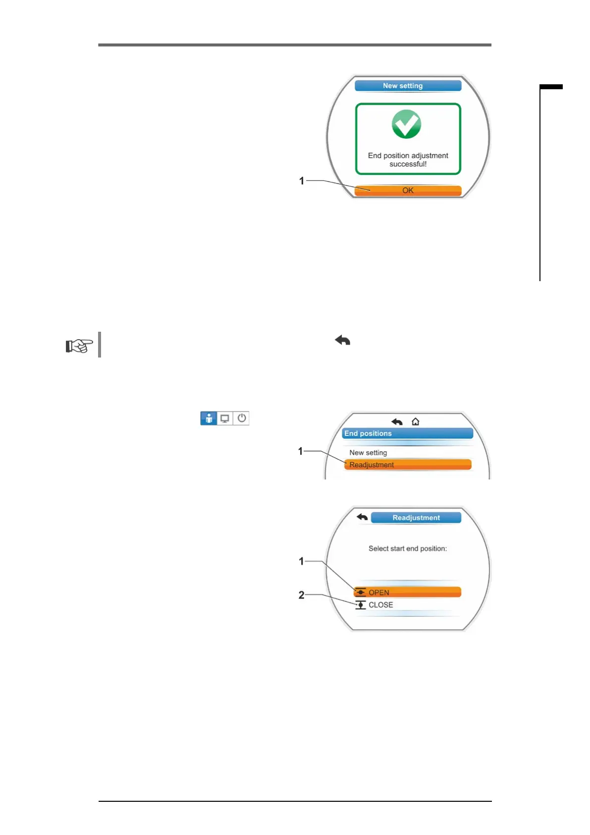 The setting procedure can be aborted by selecting "Back" . The formerly valid end position