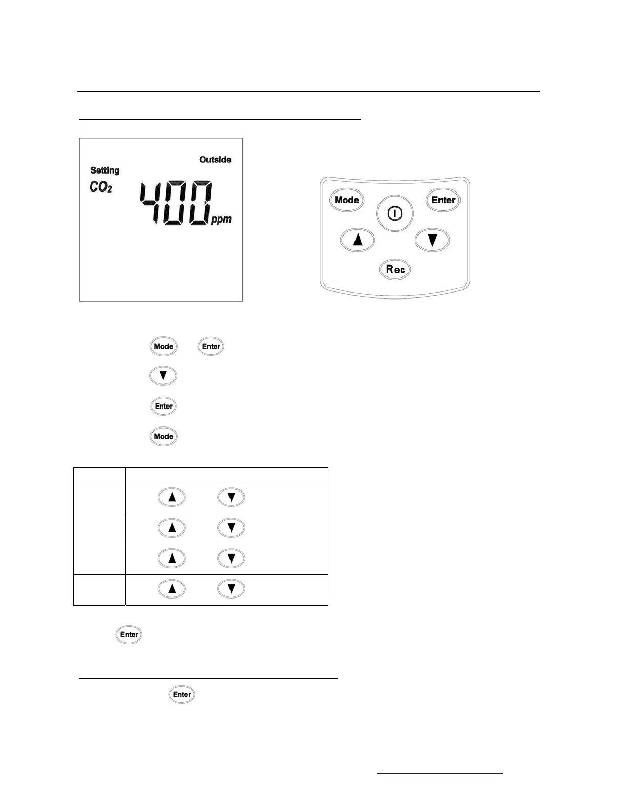 to enter the Outside CO2 setting Menu (First digit starts to flash)