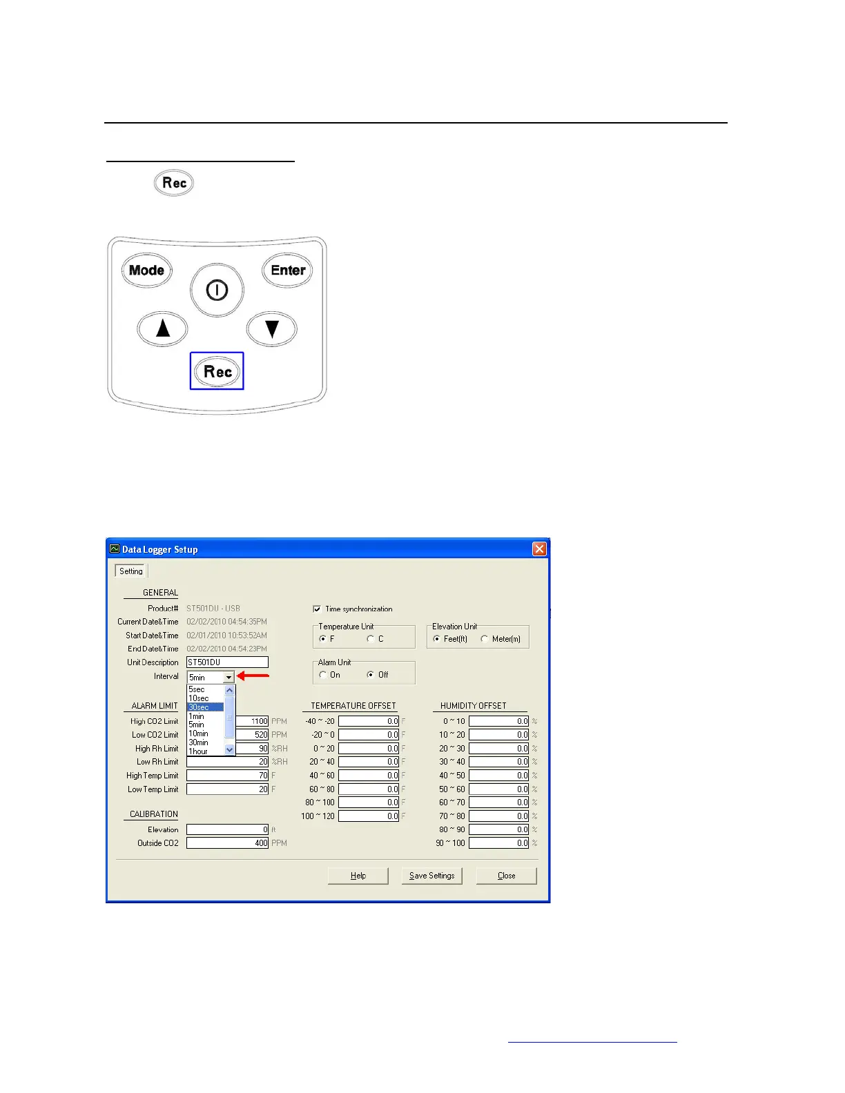Sampling rate (5sec / 10sec / 1min / 5min / 10min / 30min / 1 hour)