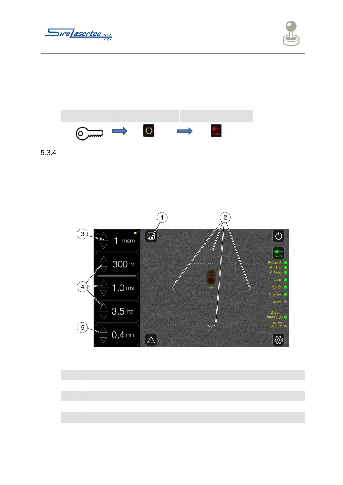 ● To do so, press the icon (2) on the display. The laser is only operationally ready