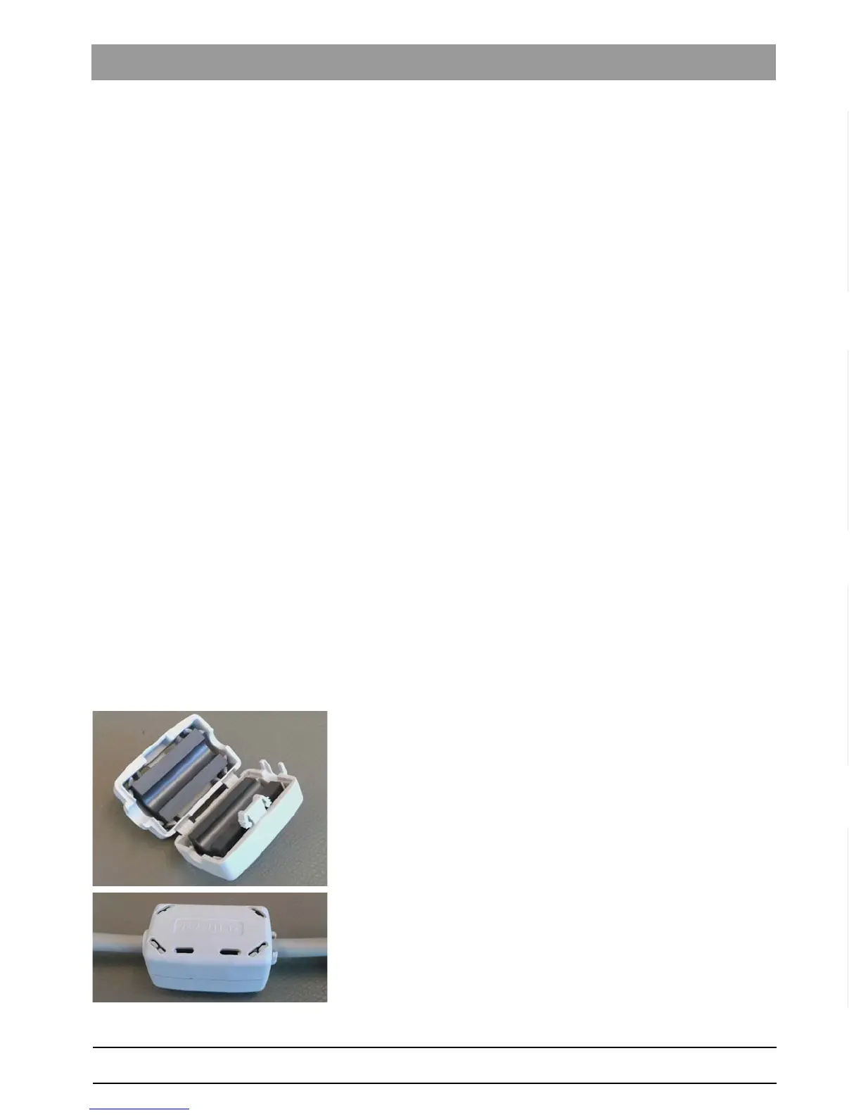 1. Place the network cable into the open ferrite core.