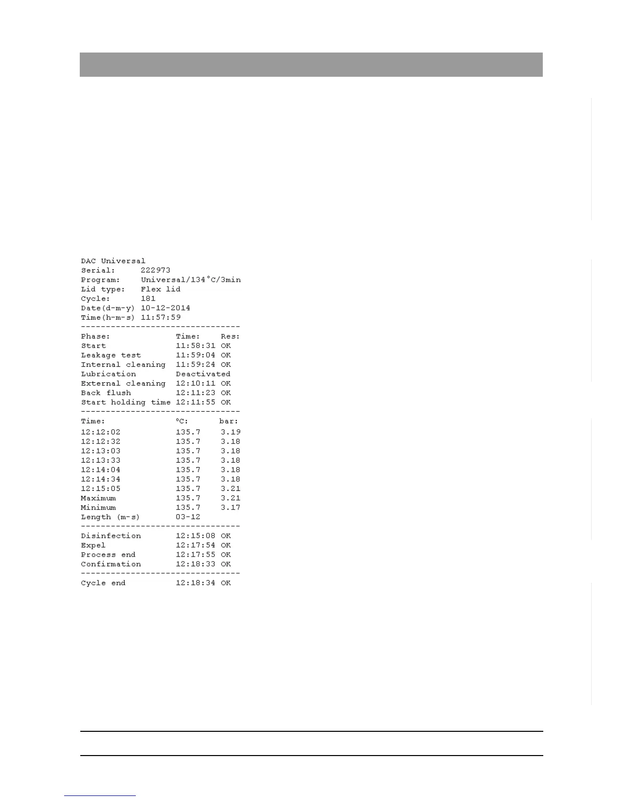 If any of the phases has failed see „Display messages DAC UNIVERSAL