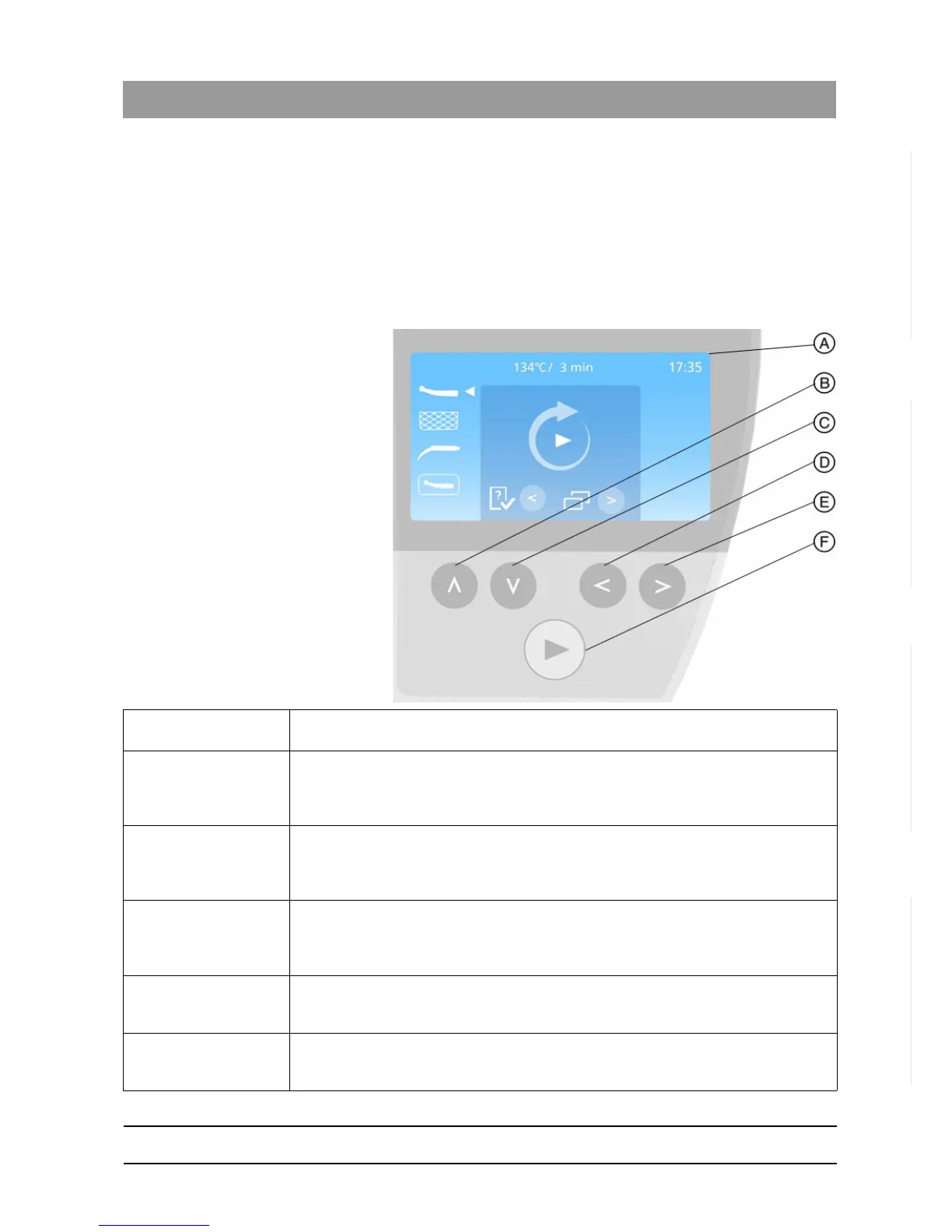 F: "Start/Stop"-Key This key is only active when the autoclave is displaying the ready screen. Pressing this
