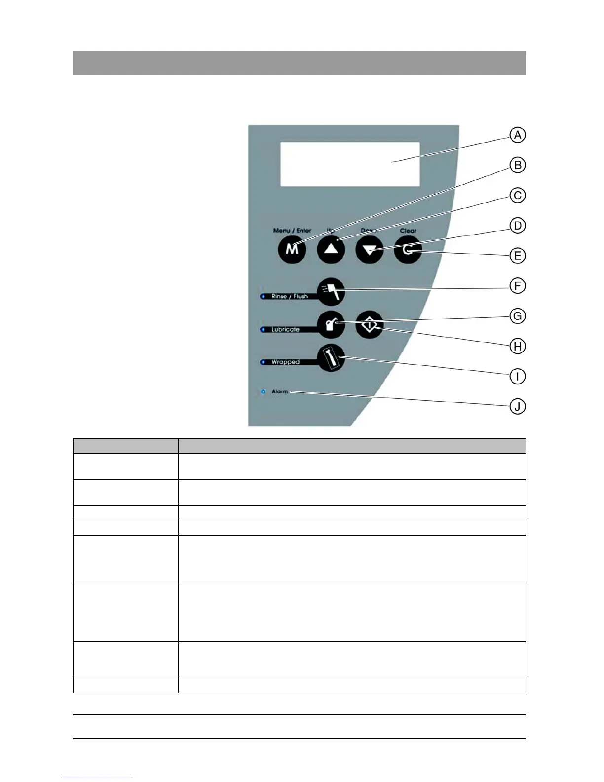Key when it is switched on activates and deactivates cleaning. When the blue LED control