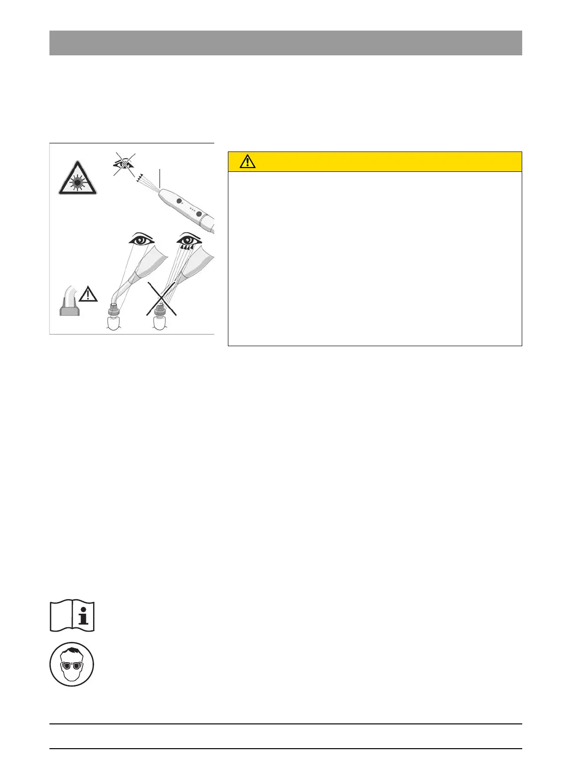➢ Never aim the laser beam at the user's or the patient's eyes, even if