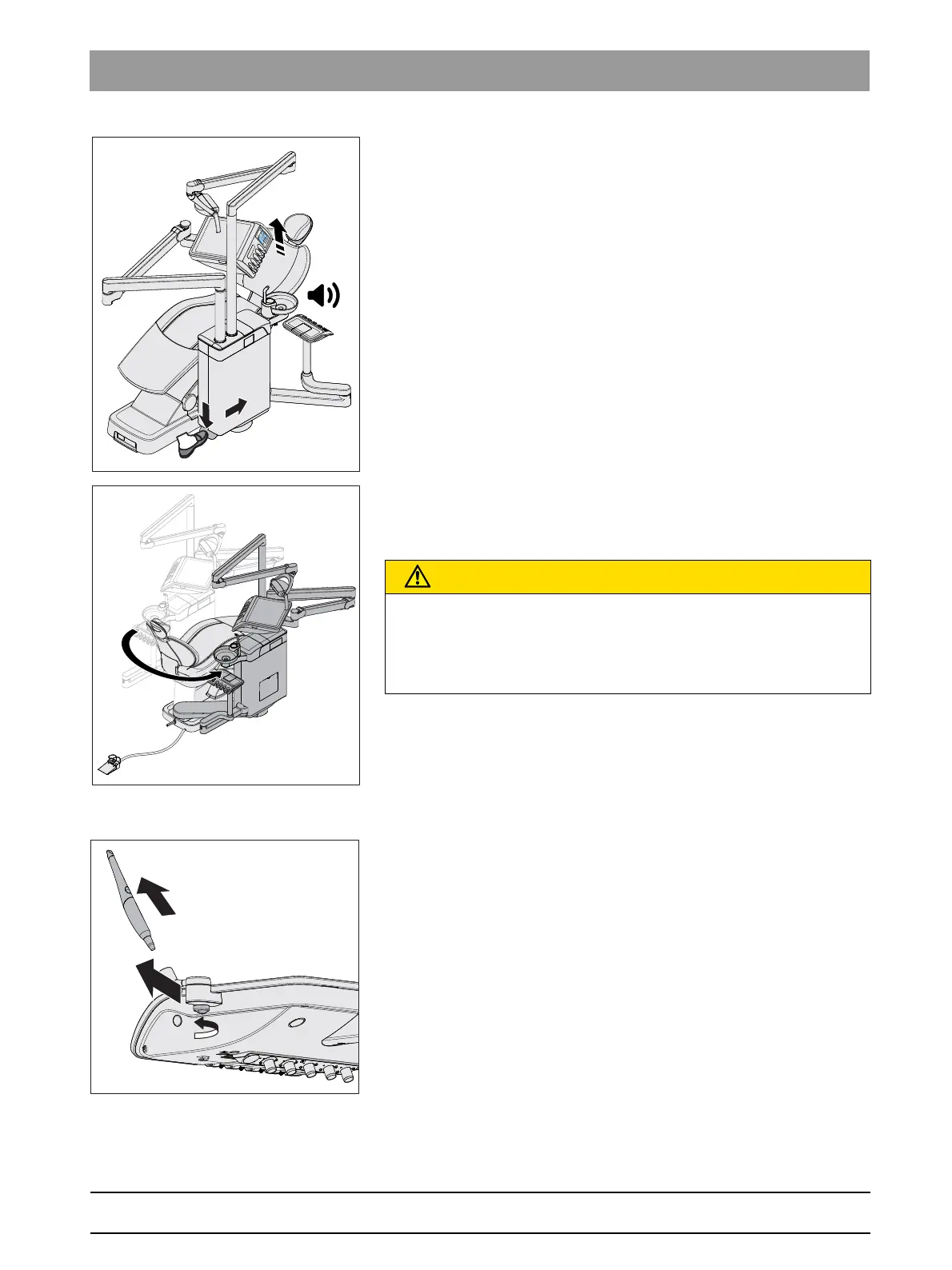 2. Move the water unit up until the stop to the other side of the patient