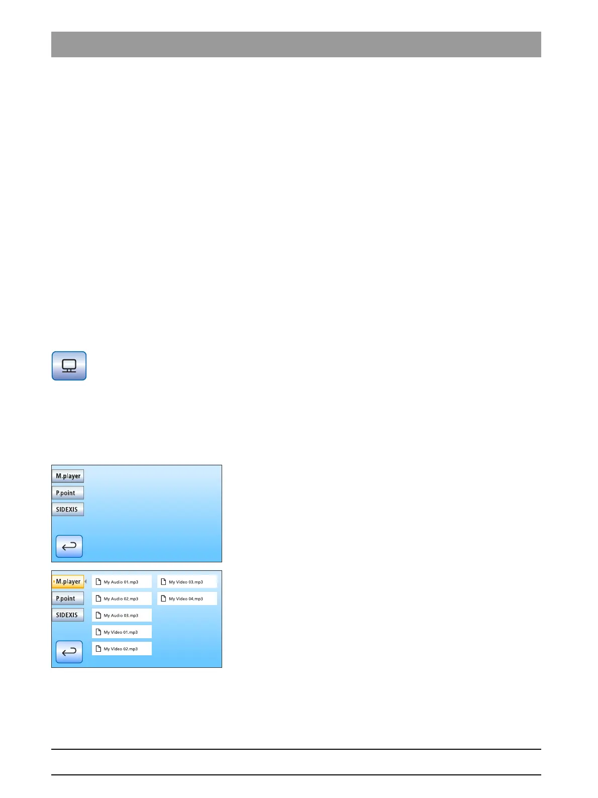 files of the PC. Select the desired file by touching it.