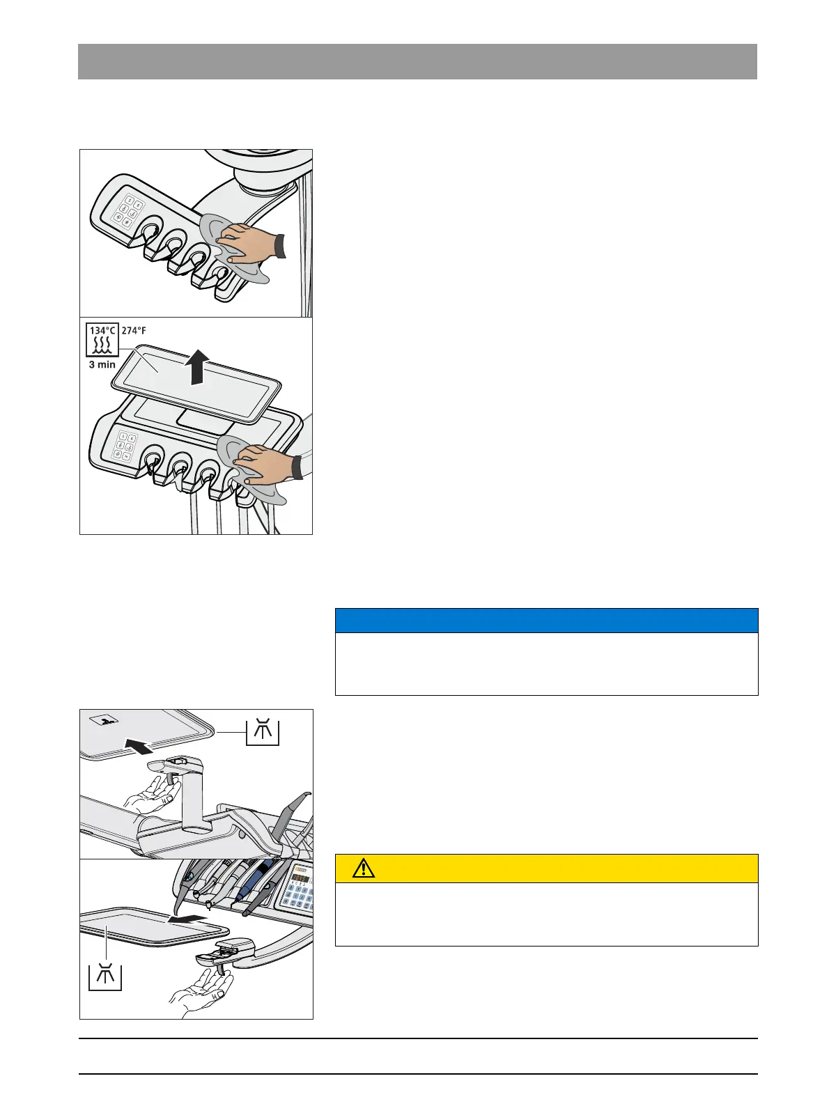 2. Clean and disinfect the assistant element, see "Cleaning and
