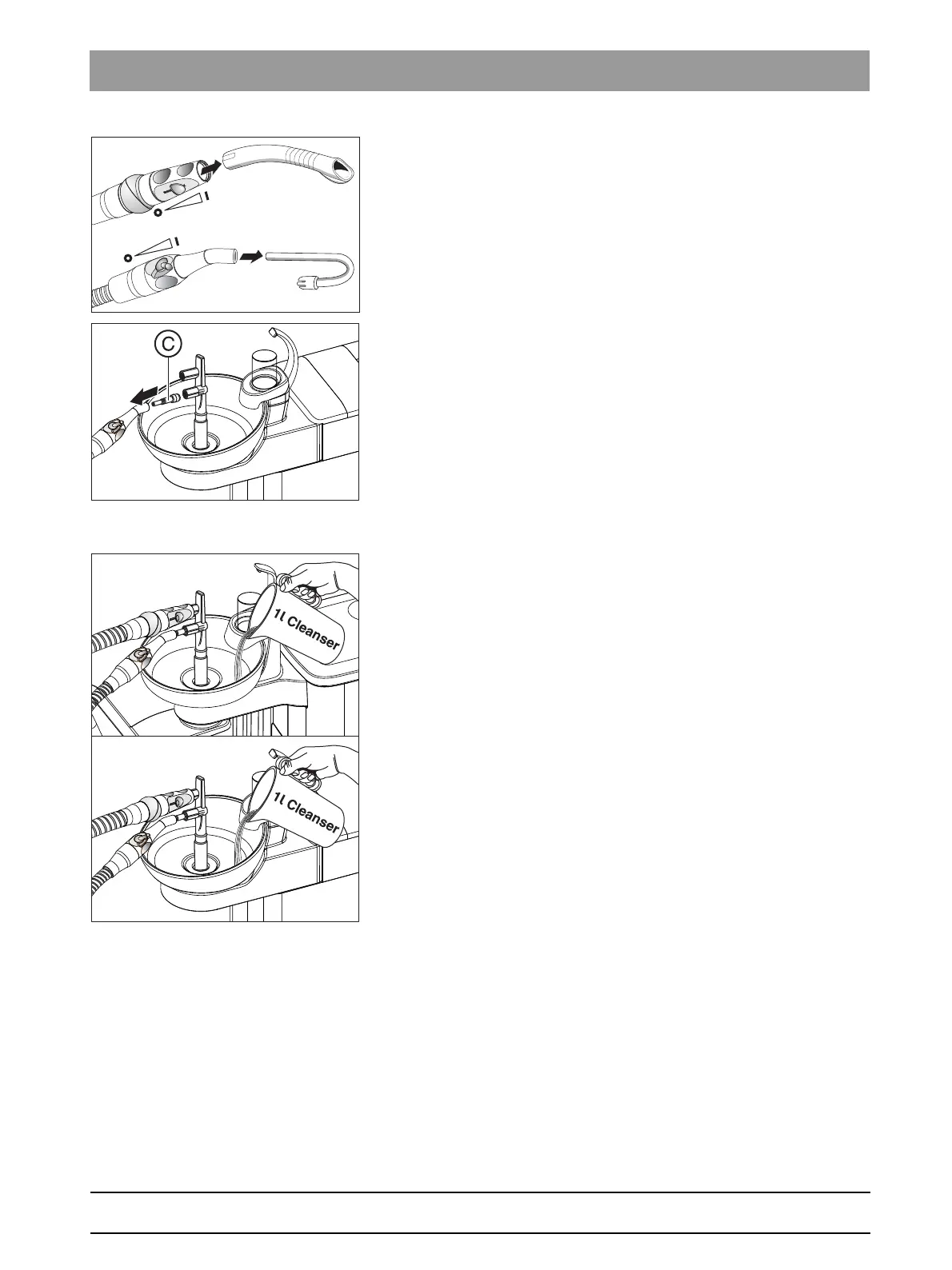 1. Pour 1 liter of cleaning solution into the cuspidor.
