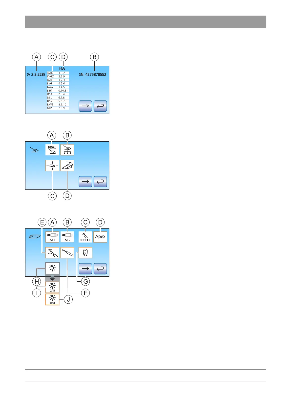 ➢ (A) displays the full software status of the treatment unit.