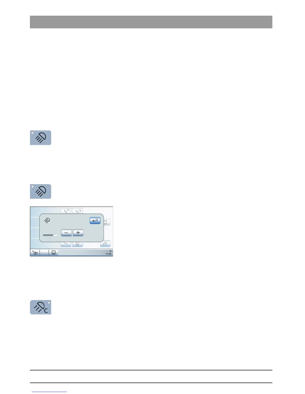 2. Use the – and + keys to adjust the brightness of the operating light.