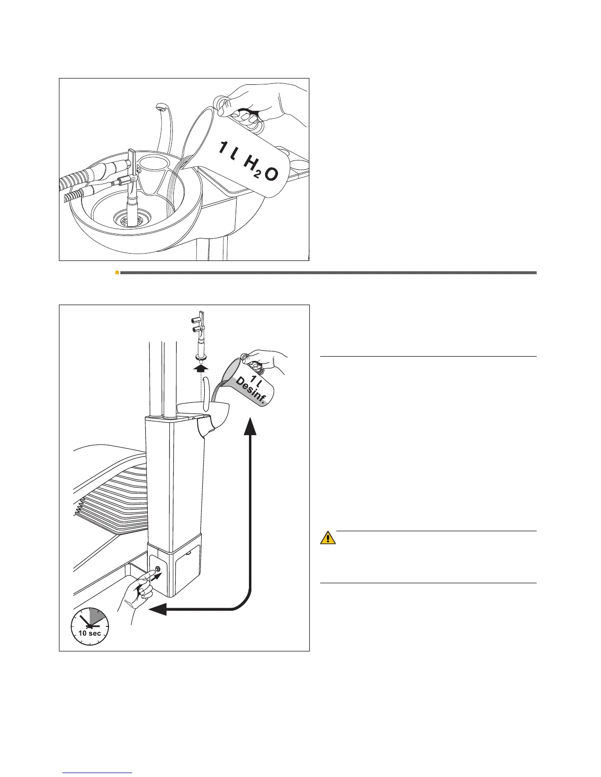 • Then pour 1 liter of disinfectant solution into the cus-