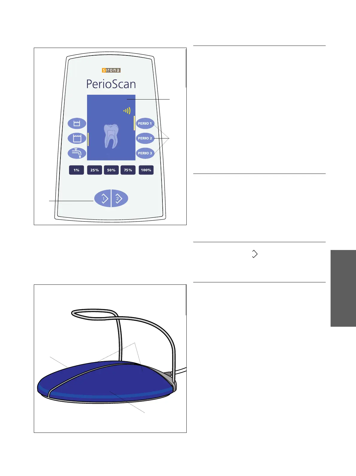 Sur le côté droit du PERIO (19) se trouvent trois touches