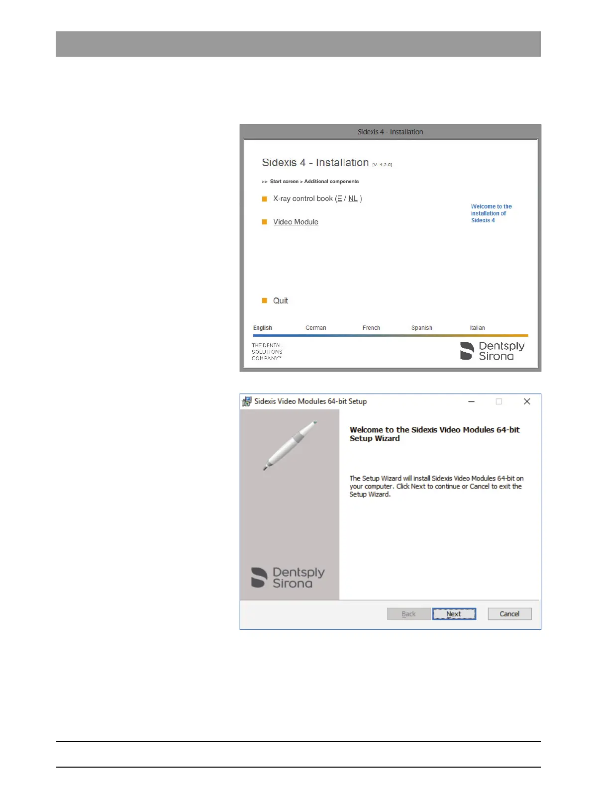 Operator's manual for SIDEXIS 4 Video Plugin TENEO / SINIUS / INTEGO 2.3To install the video plugin