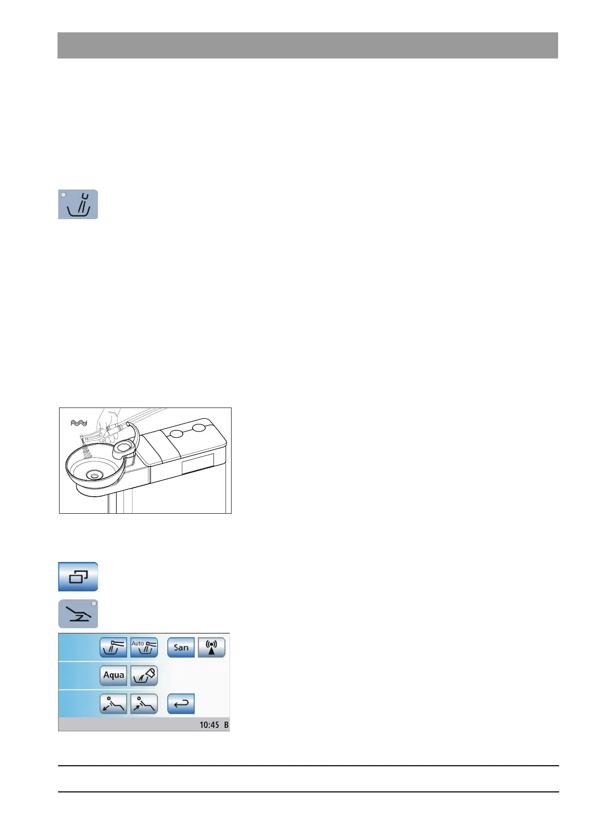 ➢ Activate the cuspidor flushing of the cuspidor bowl for at least one