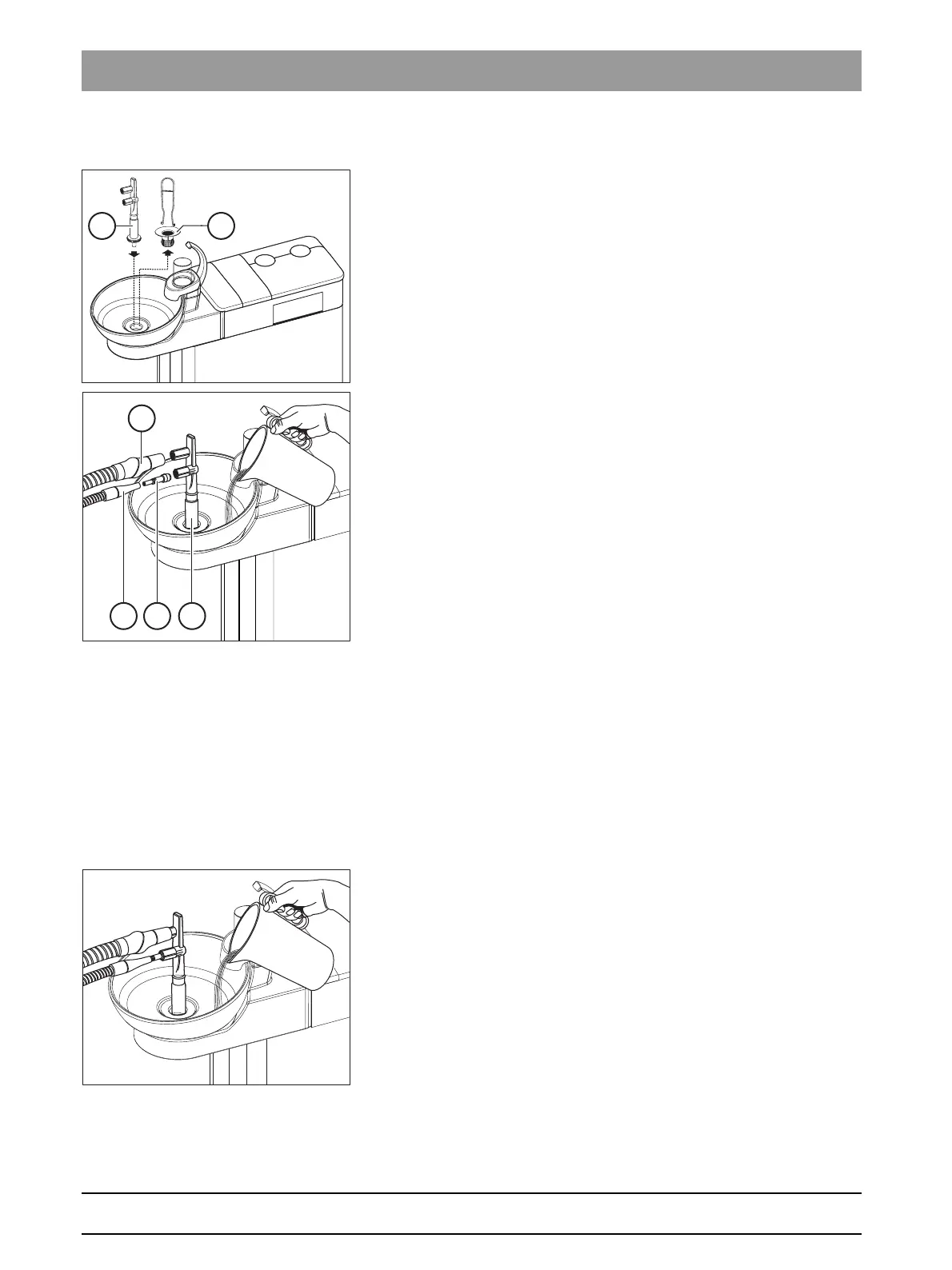 1. Pour 1 liter of cleaning solution into the cuspidor.