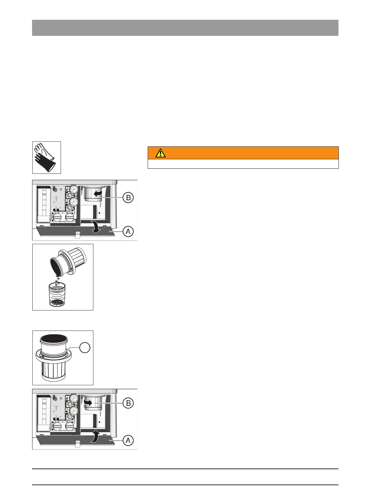 2. Loosen the bayonet catch by turning the sediment container (B)