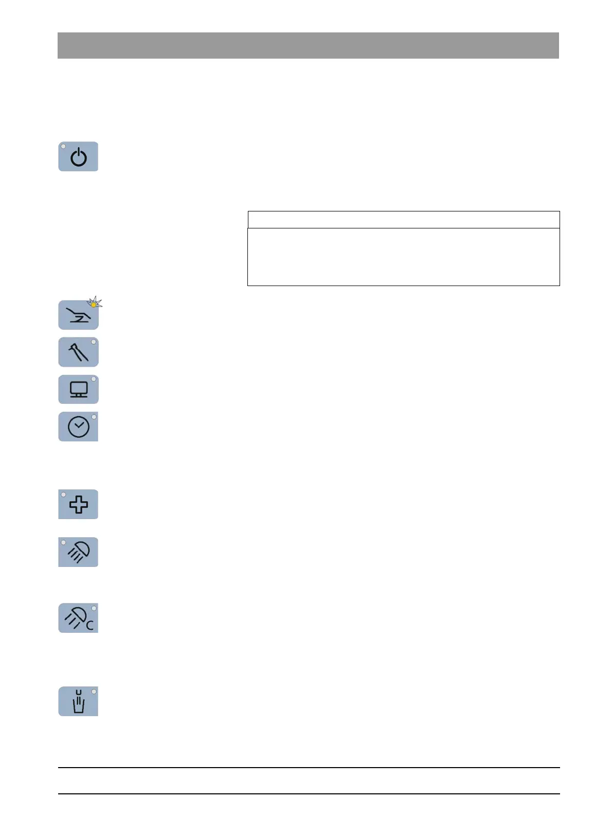 To switch off the treatment center, press and hold the key until an