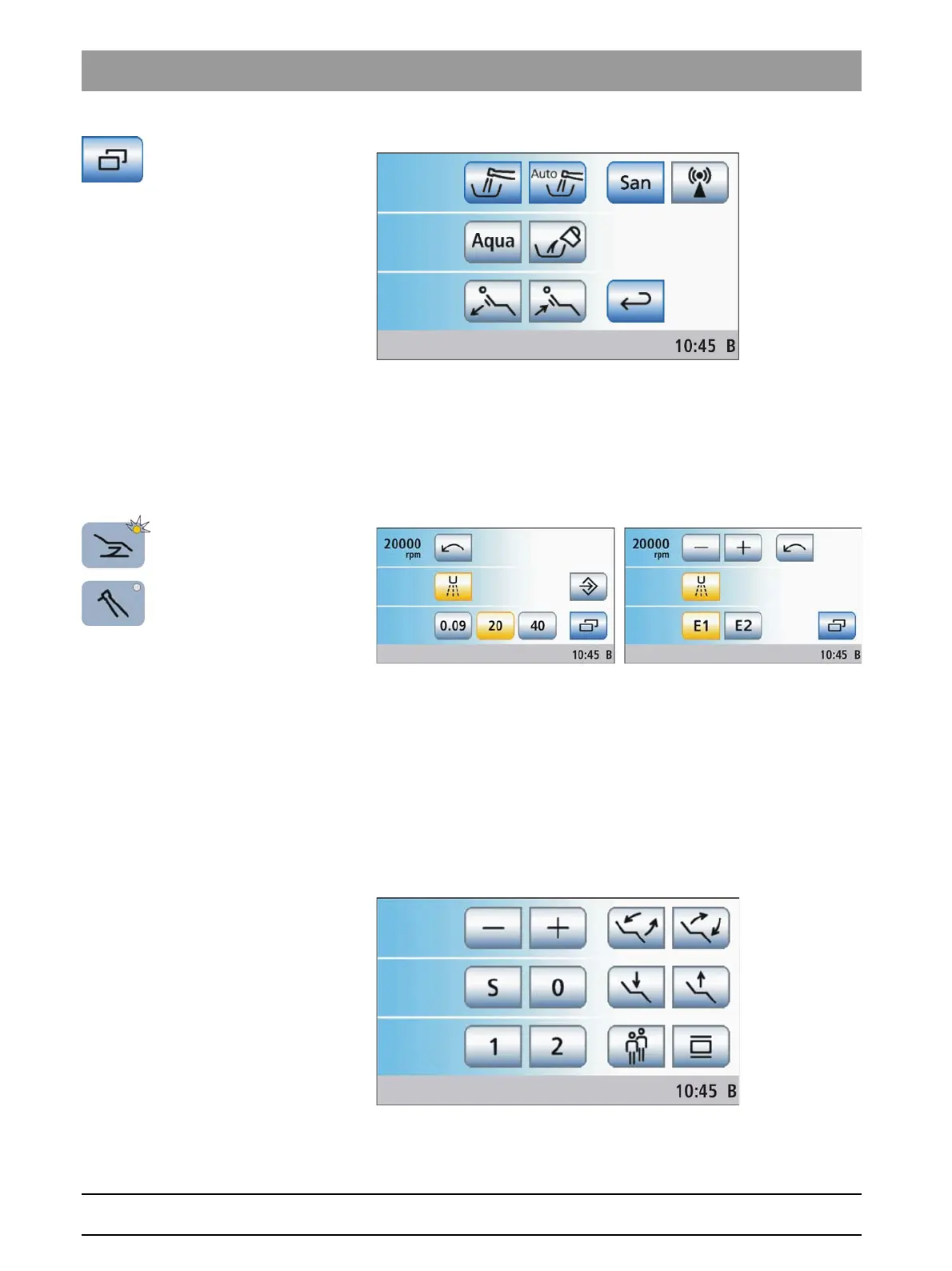 function keys for patient chair programs and manual chair setting, as well