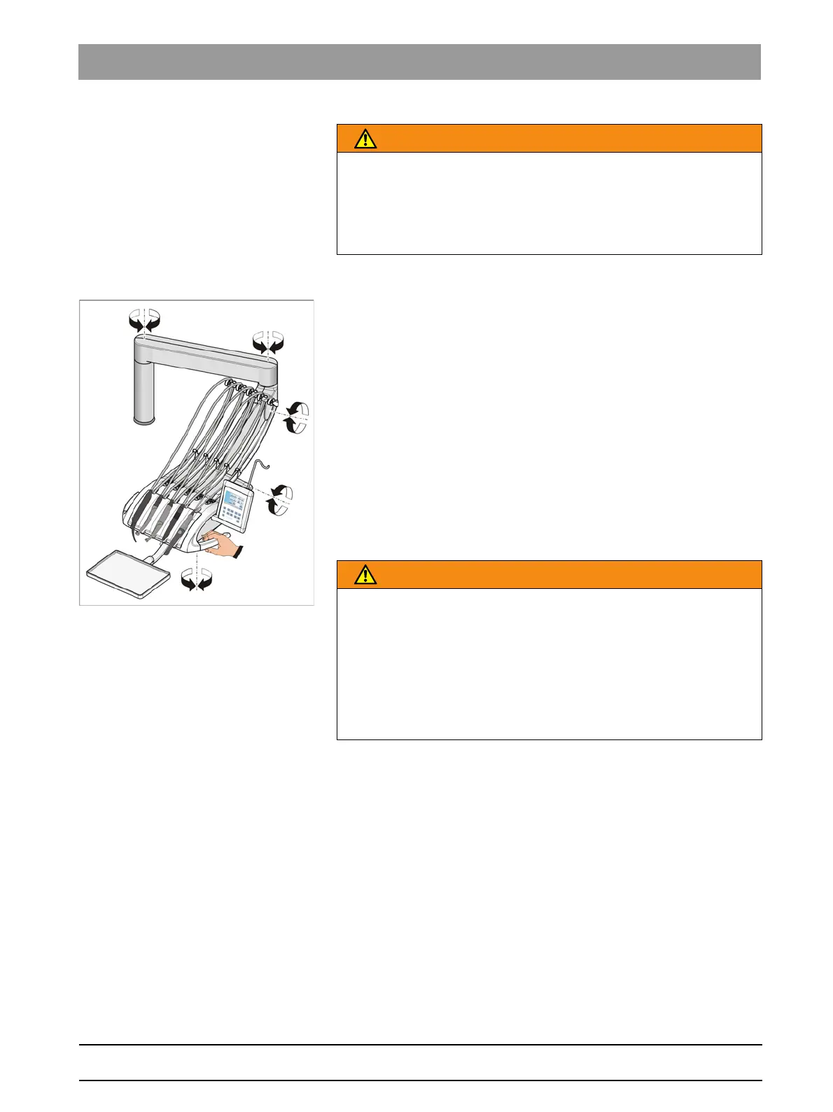 Swivel arm dentist element, collision, manual movement